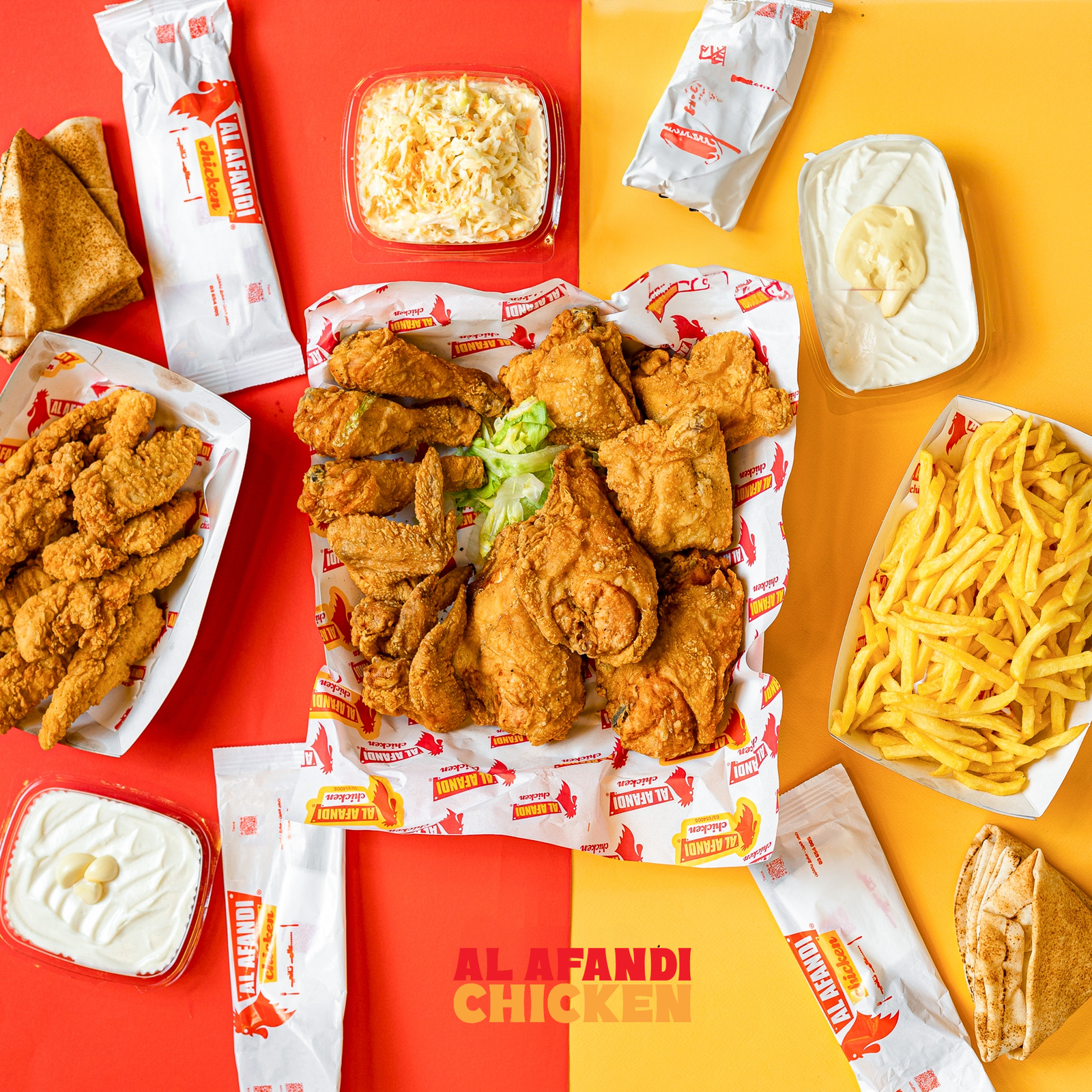 12 pieces of fried chicken, 12 pieces crispy strips(regular or spicy), large fries, large coleslaw, 2 large garlic pastes, bread